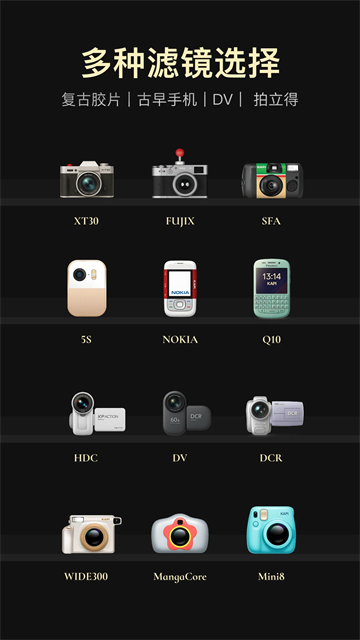握供多种复古风格的滤镜和特效,让您随心所欲地创造不同的视觉效果。