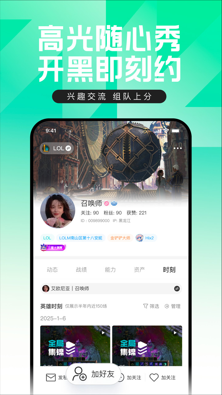 3、全新个人信息主页,设置个性化头像和签名,做个真英雄!随时了解自己或他人的战绩情况。