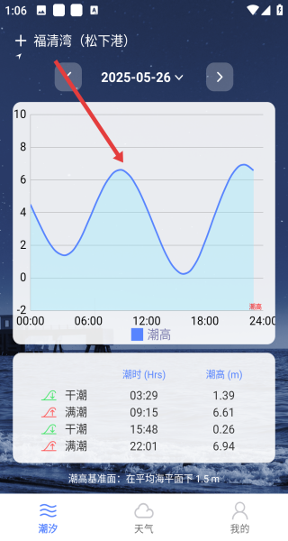 3、软件能精准展示潮汐数据,如2025年5月26日福清湾松下港的潮时潮高情况,为赶海出行提供有力参考。