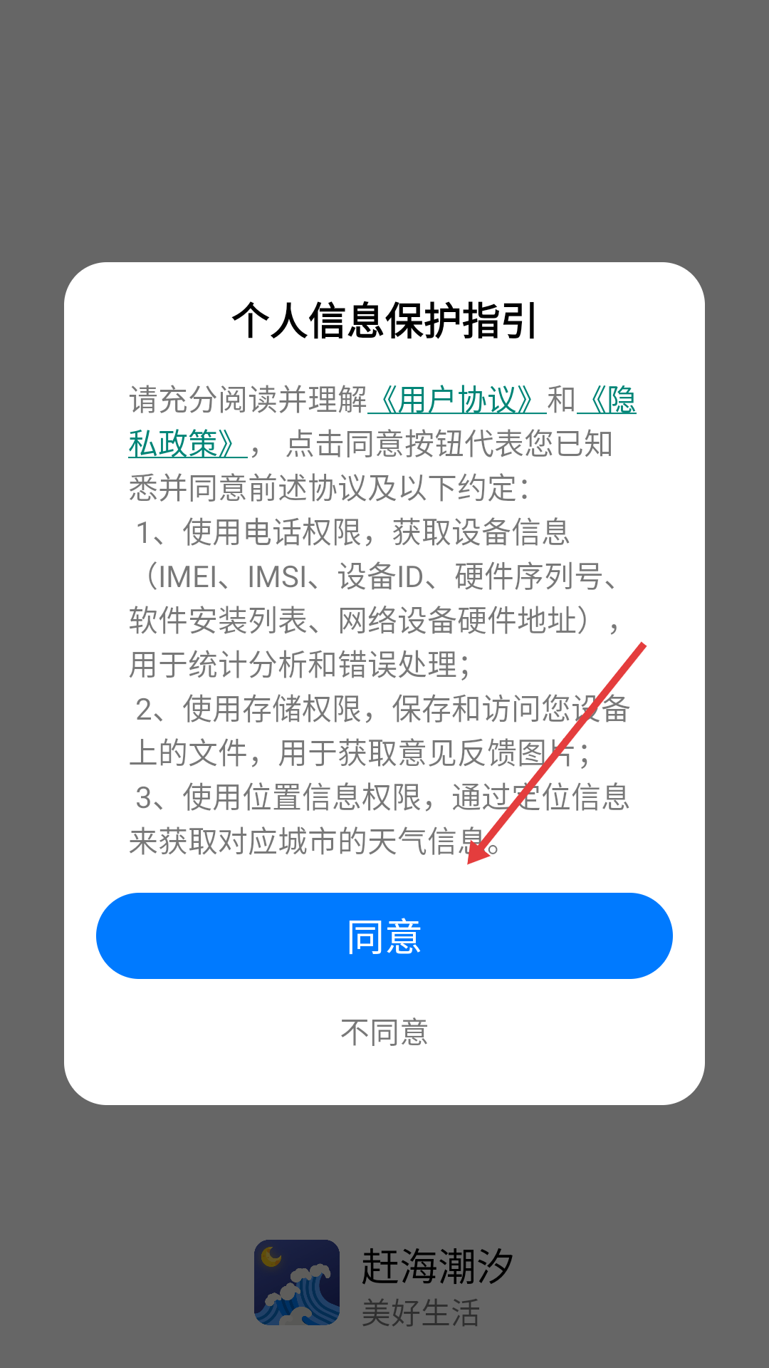 1、赶海潮汐注重用户个人信息保护,使用前需阅读用户协议和隐私政策,同意后才可获取相关权限。