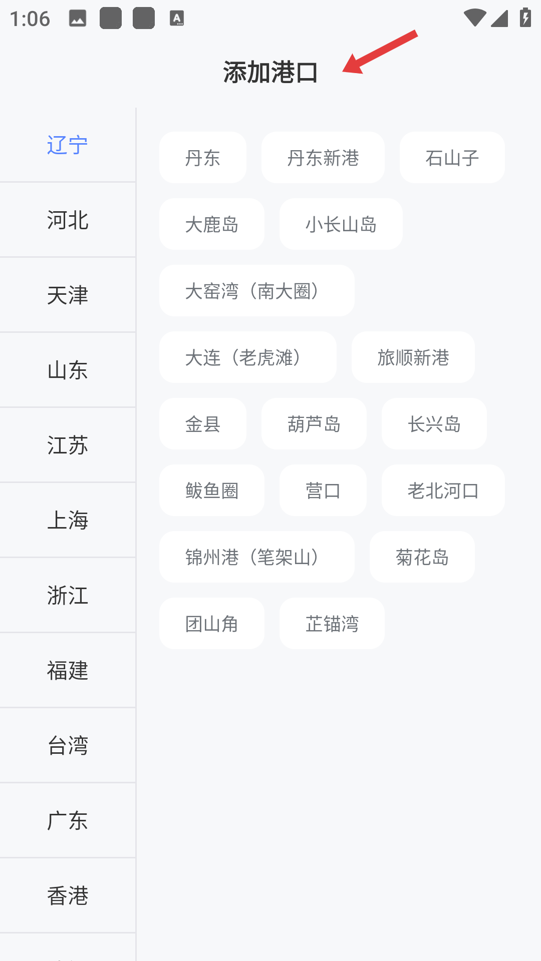 2、该软件提供丰富港口选择,涵盖辽宁、河北、天津等多地港口,方便不同地区用户添加。