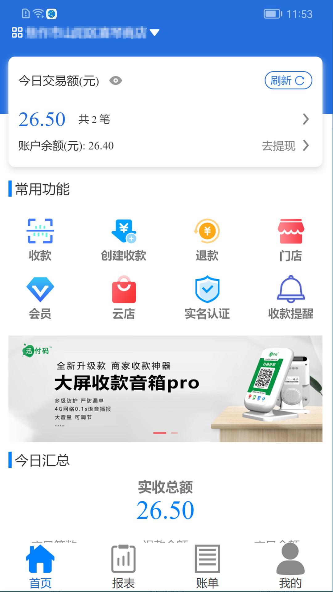在迅付码的报表中心将公司的经营数据进行了统计,用户可查看统计的经营报表数据进行了解。