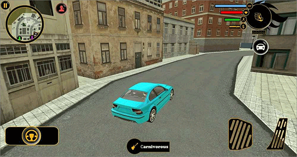 6、左边按键左右滑动即可控制汽车的方向,右边分别为倒车和前进