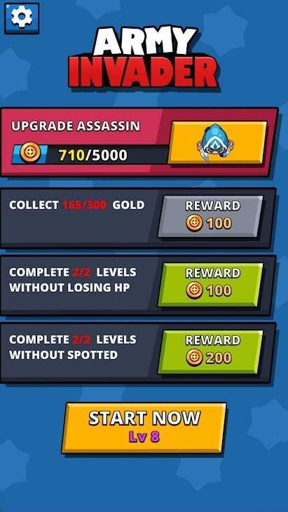 军队入侵(Army Invader)这是一款军事题材的策略游戏,玩法轻松有趣味,游戏拥有多样的玩法,简单有趣,操作简单易懂,玩家可以穿梭于各处,消灭敌军,初期玩法较为简单,但随着游戏深入,难度也会加大。玩家将在迷宫般的地图中消灭敌人,解救人质,非常奇特的进攻武器,可以轻松击败对手,最终赢得游戏胜利。