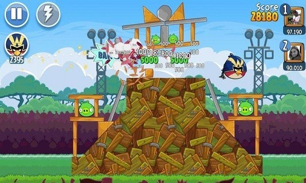 3、Angry Birds可让你与全球玩家PK,炫耀通关成绩,根据排名获得羽毛奖励,提升鸟儿等级和拖尾效果。