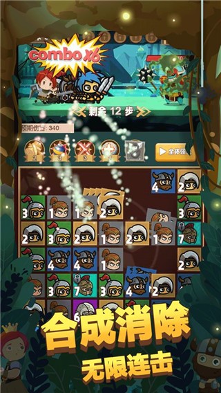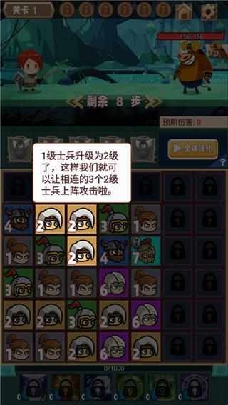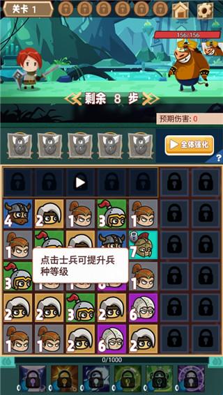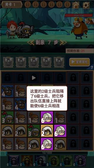 4、运用自己的策略和适当的道具,将战斗场地中的士兵合并成更高等级的军队。