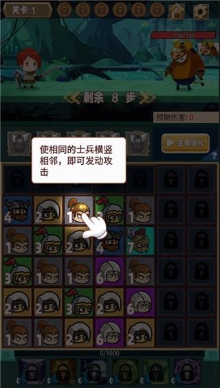 5、使相同的士兵横竖相邻,即可发动攻击;