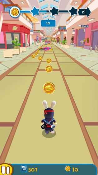 1. 玩家只能通过连续跑酷收集大量金币奖励。高级兔子等待玩家解锁和控制