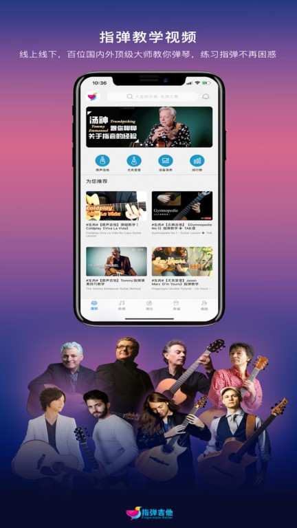 指弹吉他是一款可以自学弹吉他的音乐教学软件。软件内有很多的大师吉他教学视频可供观看,并且全部都是免费的哦!可以帮助你来提升弹吉他的水平。同时收录了很多吉他曲谱可以免费使用,各种类型的曲谱都应有尽有,喜欢的用户快来下载试试吧!