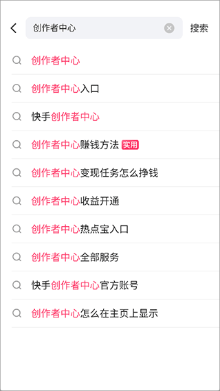 1、登录快手app后通过搜索框搜索【创作者中心】