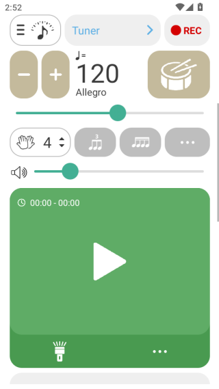 算是专为音乐家设计,界面友好,操作快速简便,大尺寸启动按钮便于用户轻松控制节拍器启停。