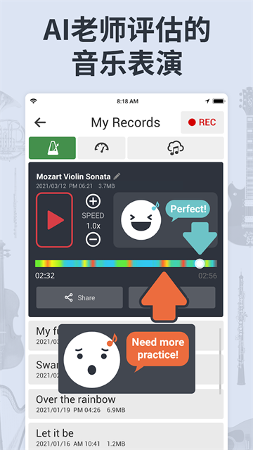 一体式节拍器+调音器+录音机覆盖钢琴,单簧管,声乐练习等。