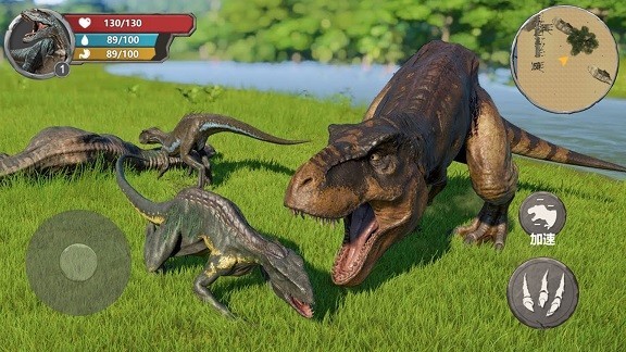 恐龙生存家园游戏-是一款恐龙题材系列的大场面冒险手游,可以控制各种恐龙进行生存冒险挑战,第一人视角的3D画面操控体验很不错,捕杀弱小的物种,获取生存空间,在这个弱肉强食的恐龙世界,只有成为霸主才能生存下来。