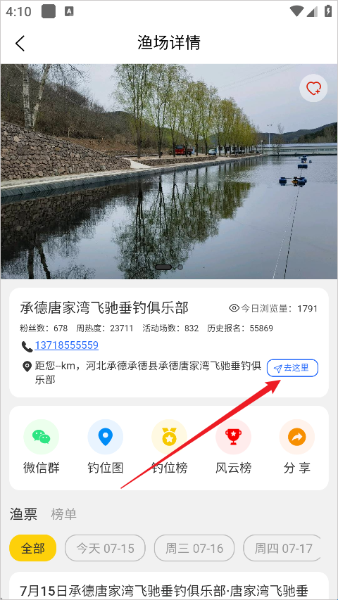 3、一键报名参加钓场举办的黑坑活动、比赛等,线上抽号打卡。