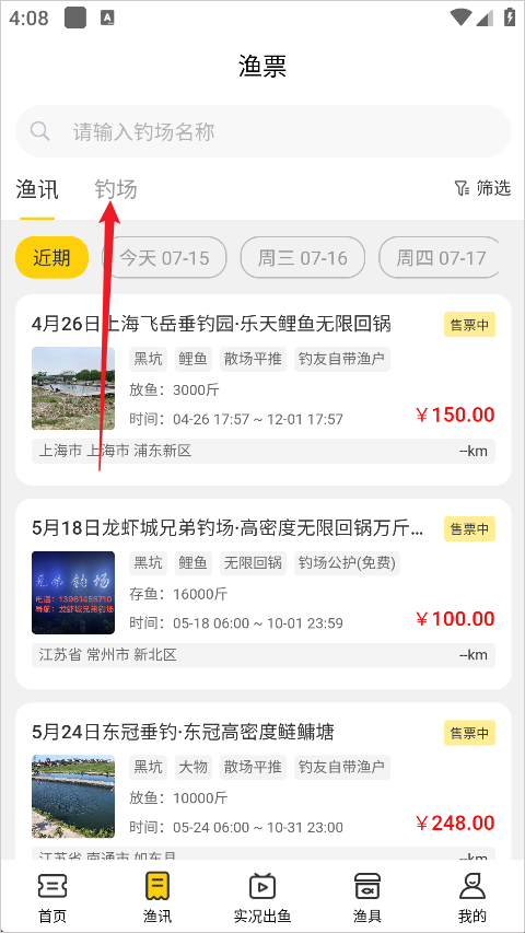 3、在这里聚集了非常多的钓场,你也可以搜索你想要的去的钓场