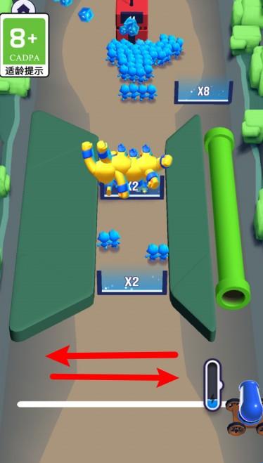 小兵冲不停是一款休闲策略塔防游戏。在游戏中,玩家通过左右滑动屏幕控制大炮释放小兵,与敌方小兵战斗。玩家需要合理分配兵力,让小兵通过蓝色数字门来增加数量,同时派遣部分小兵从红色门出击消耗敌人力量。游戏采用了橡皮人作为角色形象,画风清新可爱。它具有双线作战机制,关卡数量众多。