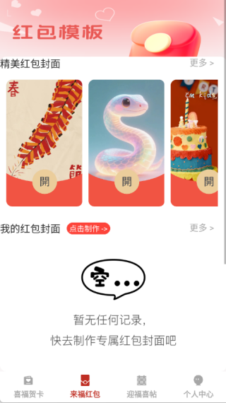 2、在来福练包页面中有各种精美的红包封面,用户还可以进行点击制作进行制作精美的红包封面;