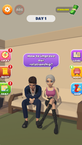 2、夫妻可在场景中自由移动,玩家点击屏幕引导他们至需搬迁的物品处。