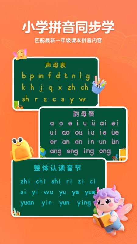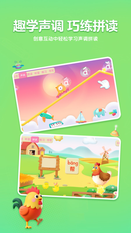 设计了各种拼音相关的游戏,让孩子在游戏中巩固所学的拼音知识;