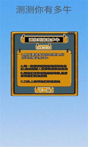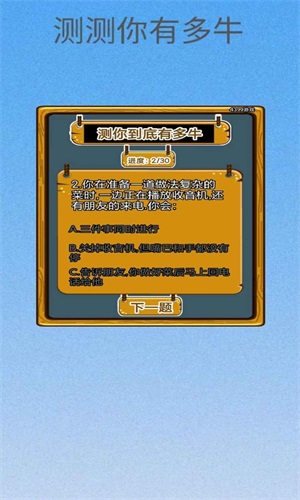 测测你有多牛是一款包含多种玩法的游戏,里面有各种模式趣味关卡,玩家可以尝试多种,非常考验玩家的脑筋,让玩家更大程度的发挥增长自己的智力。操作容易,简单易上手,还不占内存,玩游戏的同时还能锻炼大脑放松心情,如果你感兴趣的话就来试试看吧。