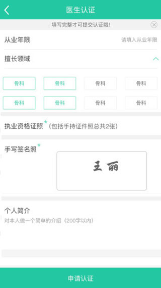 3、了解到医生的服务经验、当前人数和擅长领域;