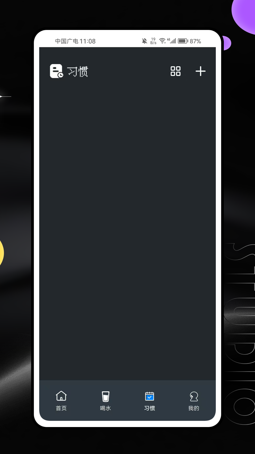 3、新增一个习惯记事功能,每天做了什么事都是可以在这里点击加号进行记录的哦,算是一个记事本一样的用处,好处就是随处可以记笔记;