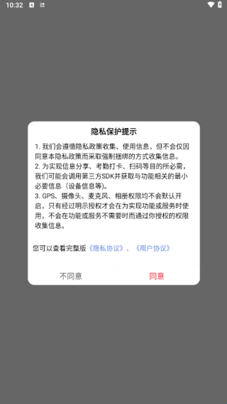 1、打开软件阅读用户隐私保护提示,点击同意即可开始使用。