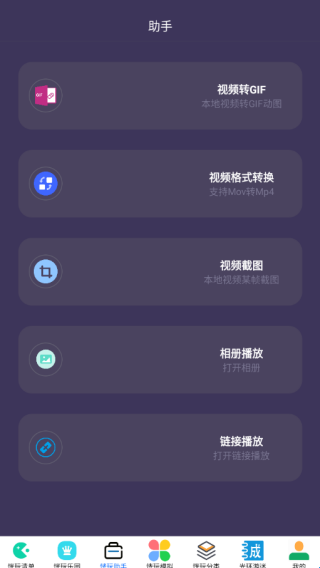 2、来到软件助手页面可使用视频转GIF、视频格式转换、视频截图等功能。