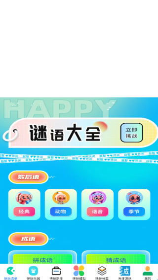 1、文本交互,有谜语,成语,歇后语等方面的调整,包含经典、动物、谐音、季节等分类。
