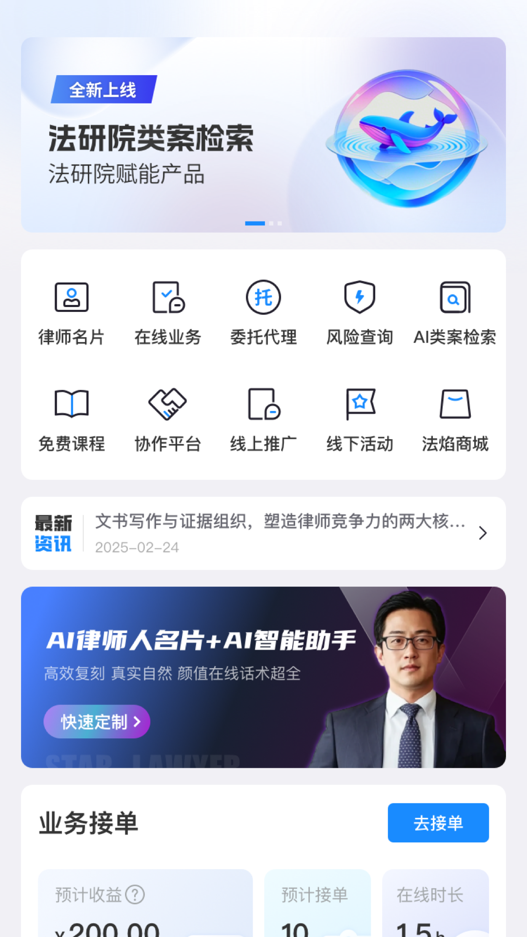 2、打造“办案-学习-接案-生活”一站式平台,构建律师行业“水电煤”级基础设施。