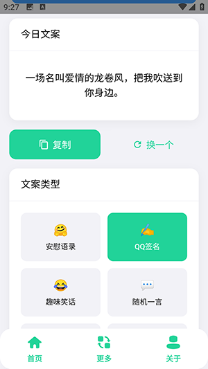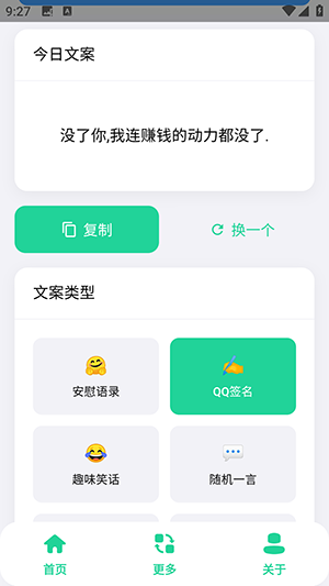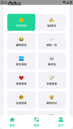 聚合文案库app官方版可以为用户提供海量的文案资源,让用户在里面轻松使用。不管是励志文案、情感短句还是图片素材等,都能满足用户的需求,让用户在里面可以根据自己的需求来进行使用,并且所有的文案都是免费提供,让用户创作各种优质的内容!