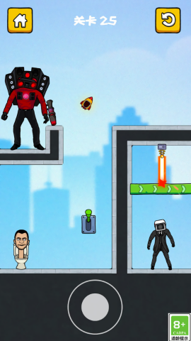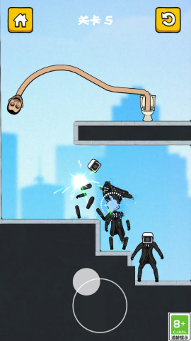 4、成功清除所有监控人后即可通关,获得的金币和奖励可用于解锁造型与能力各异的新马桶人,迎接后续更具挑战性的关卡。