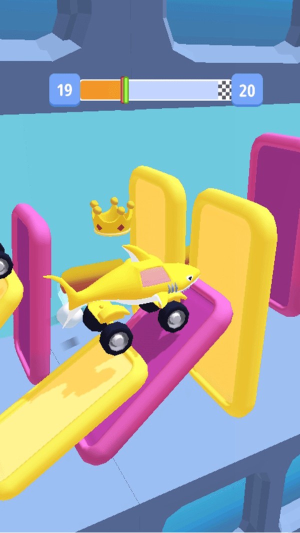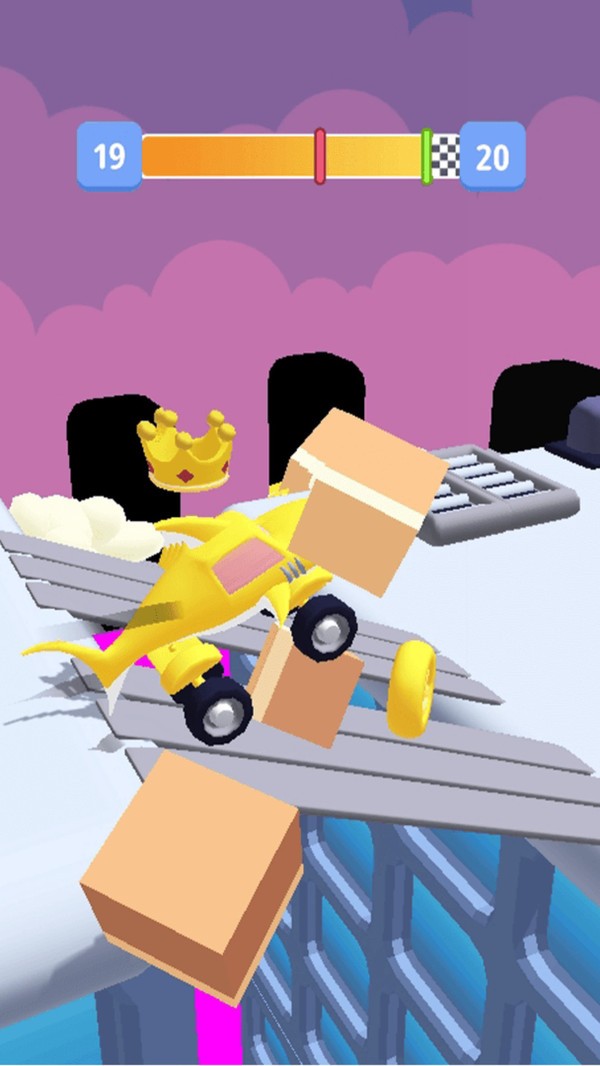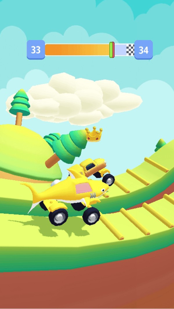 2、参加比赛,通过虚拟按键控制车辆转向、加速和刹车,超越对手赢得胜利。