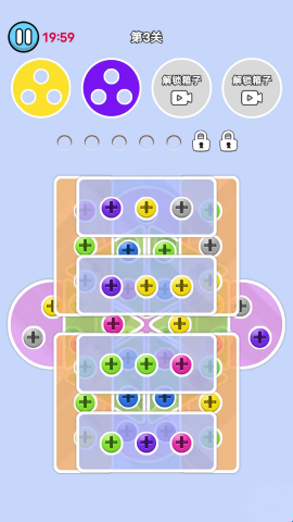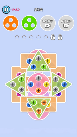 1、要想享受并拧紧螺丝,首先需要了解游戏的基本操作。玩家只需用手指点击画面上的螺丝,3个以上相同颜色的螺丝就会消失。