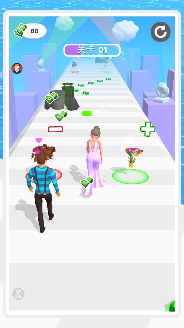 4、以霓虹风格打造跑酷场景,搭配 “时尚圈”主题,视觉上充满潮流感,区别于传统跑酷的单调场景提升视觉吸引力。