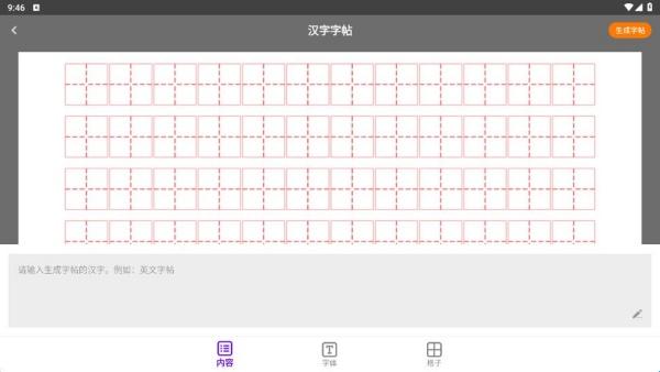 2、进入字帖练字页面,我们可以自定义练字内容。