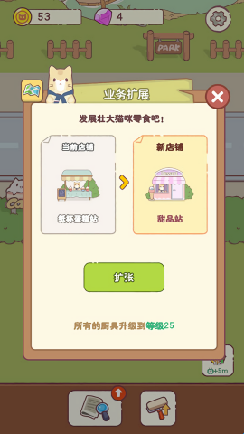 4、当营业规模达到一定程度时,即可解锁更高级的店铺。