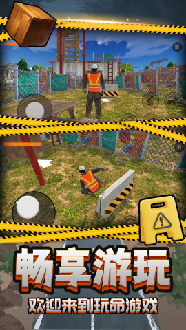 2、虚拟摇杆操控加多样动作,操作直观易上手,下蹲、跳跃、转向等动作适配工地障碍,强调反应与技巧。