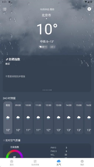 4、在天气页面,则为大家展示了各个城市气象数据,自己切换城市即可查询,非常全面。