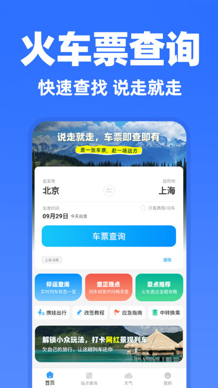 1、进入app的首页,我们能根据行程安排,搜索车票。