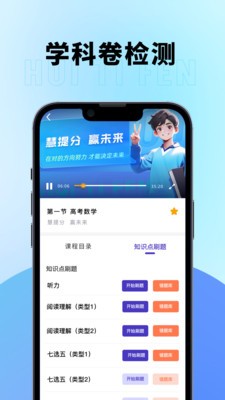 3、丰富的增值服务:除了基本的学习资源,慧提分还提供名师陪跑营、学科检测和督学体系等增值服务,为学生的成绩提升提供全面支持。