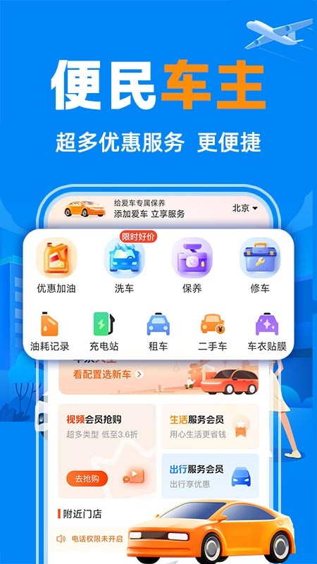 1、在首页中提供优理加油、洗车、保养、修车、油耗记录、充电站、租车、二手车、车衣贴膜等版块,还有车系大全、视频会员抢购等功能;