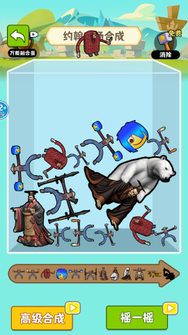 4、串联人物合成、动物合成双主线,同时搭配消除、华容道等衍生玩法,丰富游戏内容,避免单一合成带来的乏味。