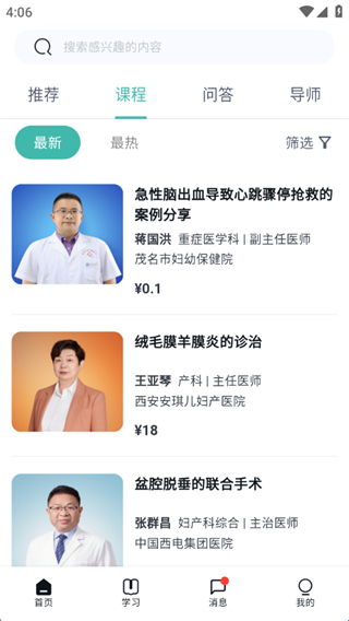 医汇坊为用户提供海量的优质医学教育课程,并且课程持续更新,明码标价让你买对不买贵,千万精选课程让你随心选随心学!更有AI高效助学,帮你一键梳理重点难点,让复杂的学习内容变得简单明了直接实现效率翻倍!还有名师答疑有问必答让难点不过夜!