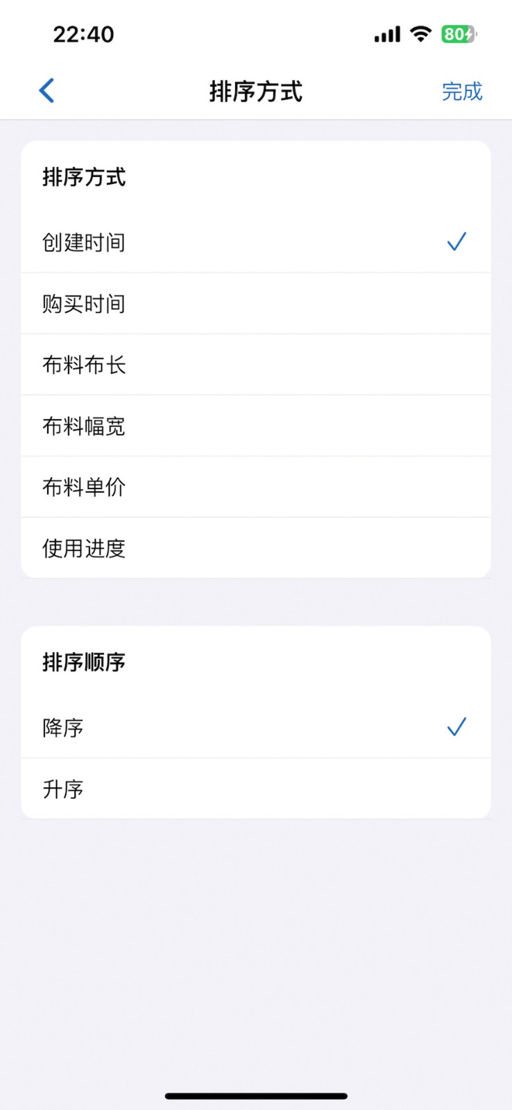 5、支持对布料进行排序,根据购买时间、使用频率、剩余长度等多种方式进行排序,进一步提高查找效率;