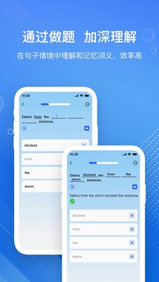 2、聚焦高效词汇提升,通过 “学练结合 + 科学复习” 的模式,帮助用户快速积累并巩固词汇量。