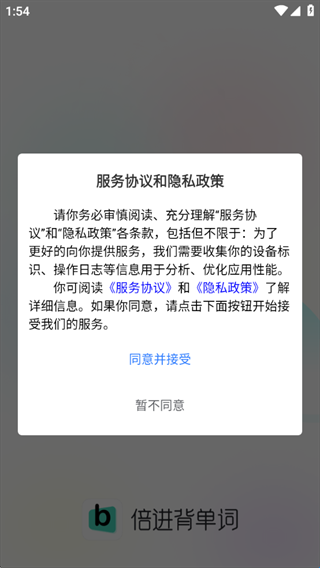 2、阅读服务协议和隐私政策之后点击同意并接受。