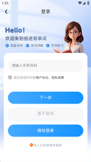 1、倍进背单词app是一款专业高效的英语词汇学习工具。它拥有从小学到托福、雅思等全阶段海量词库,满足不同用户需求。
