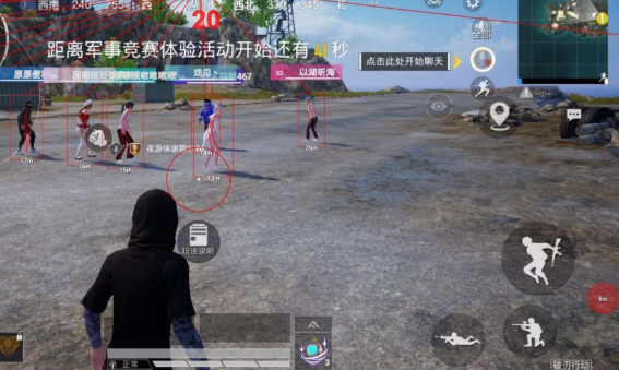3、主播无后,倍镜防抖,持枪聚点,人机显示