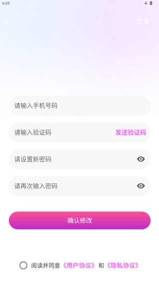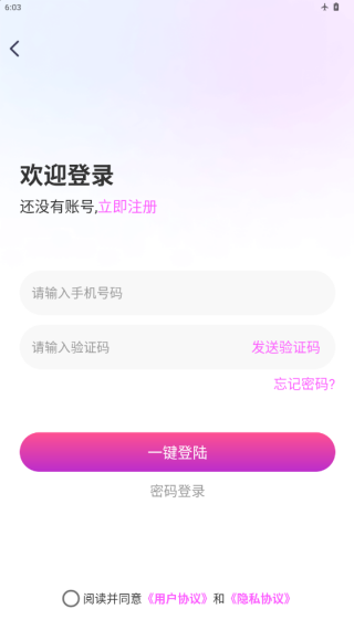 1、下载安装APP后打开软件,提示同意与否,点击同意进入注册界面;